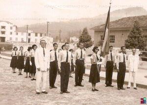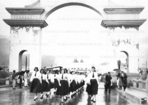 Inauguração do Pórtico da FPV, em cerimônia que aconteceu em 19 de novembro de 1955. Na foto, alunas do Departamento Educacional.