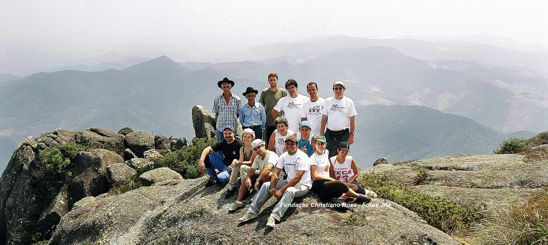 Grupo de alunos do projeto “Conscientização e Percepção Ambiental: do Rio Paraíba do Sul ao Ribeirão Passa Quatro” durante expedição ao Pico dos Marins