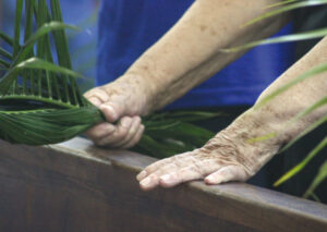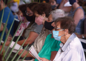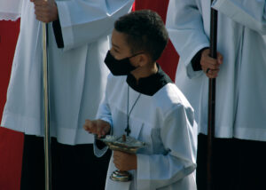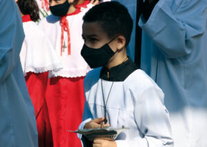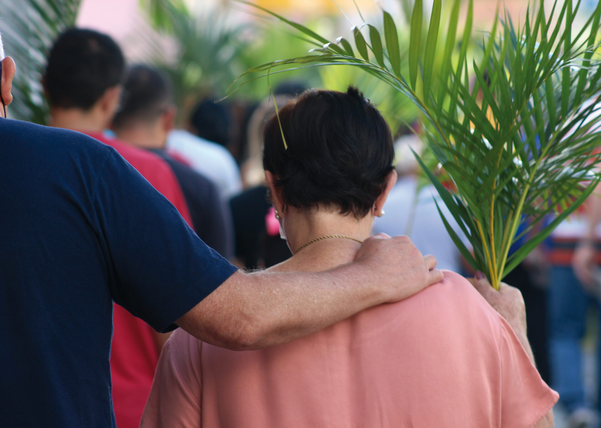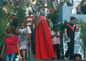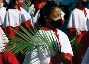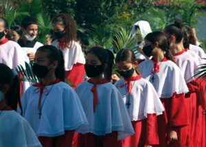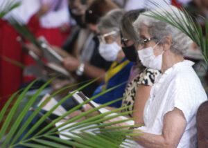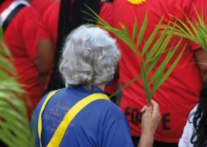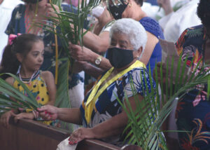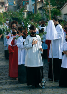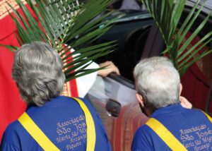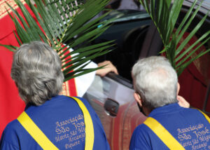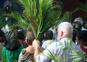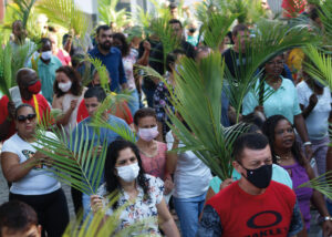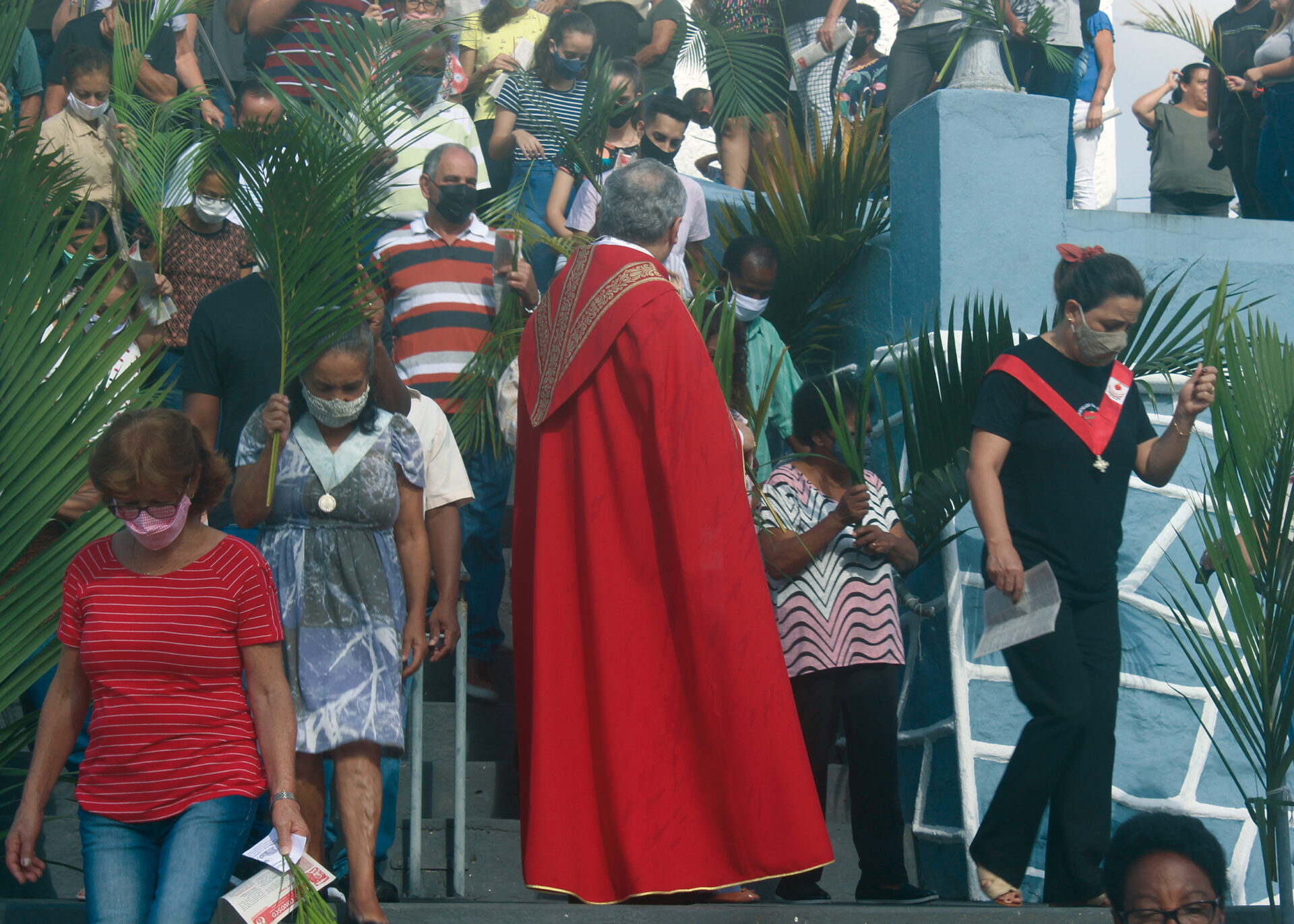 Domingo de Ramos, dia em que se comemora a entrada triunfante de Jesus em Jerusalém. A igreja repleta de fiéis, pela manhã. O oficiante ordena que todos se retirem para que se possa organizar a Procissão de Ramos. O coro canta os hinos próprios: “Glória, laus, et honor, tibi sit Rex Christe Redémptor”: “Glória e honra ao Cristo Rei Clemente. Glória a Ti, filho de Davi”.
